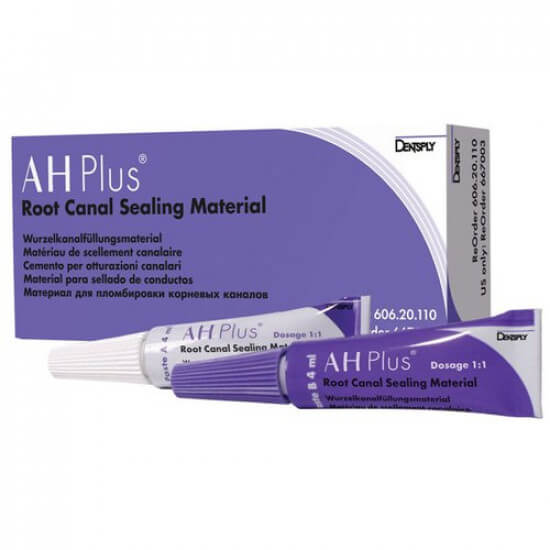 This root canal sealer can be used with hot or cold technique. AH Plus Dentsply endodontic sealer achieves a tight seal due to its self-adhesive properties and dimensional stability. It is biocompatible and exhibits moderate anti-microbial properties and therefore has the potential to significantly reduce the germ load in the canal. AH Plus root canal sealer is extremely radio-opaque so it is clearly visible on radiographs. AH Plus is a good sealer choice for use with ProTaper Thermafil obturators as the setting reaction is not adversely affected by thermoplastic obturation.