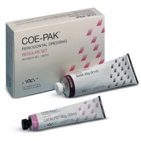 Two component material for wound dressing, to cover stitches or to stabilize loose teeth