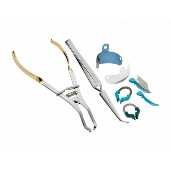 "100 x Matrices: 25 each size: 3.5 mm, 4.5 mm, 5.5 mm, 6.5 mm 75 x Wedges: 25 each size: Small, Medium, Large 30 x WedgeGuards: 10 each size: Small, Medium, Large 1 x Universal Ring 1 x Narrow Ring 1 x Forceps 1 x Pin Tweezers"