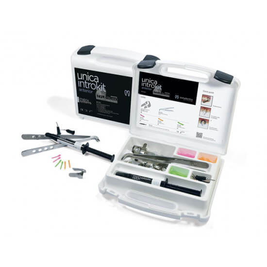 20 pcs Unica anterior matrices, 20 pcs Unica minideep anterior matrices, 40 pcs myWedge XS, 40 pcs myWedge S, 40 pcs myWedge M, 1 pc myQuickmatrix Forceps